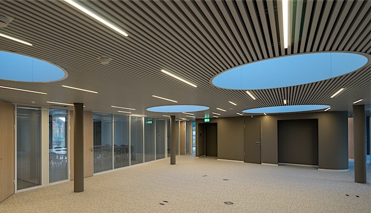 Outre son architecture intéressante, faite de rondeurs et de décrochements de façades, ce bâtiment un modèle de gestion climatique, puisque le chauffage et le rafraichissement sont assurés par une pompe à chaleur qui se ressource avec l’eau de la nappe. Autant dire une énergie verte et gratuite! La diffusion étant assurée par le principe des dalles actives, elle procure aux utilisateurs un confort idéal.